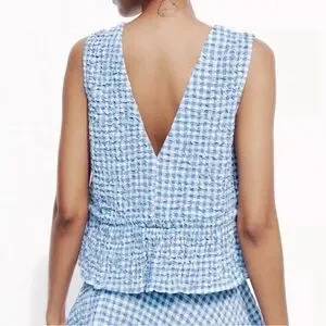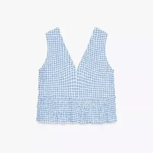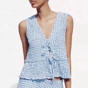 Zara Gingham Top - Light Blue -