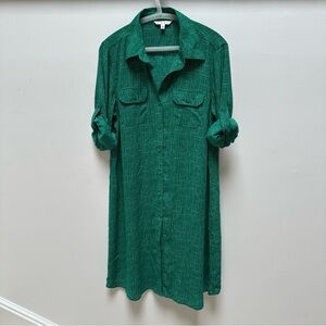 CAbi Green Casual Button Down Shirt Dress