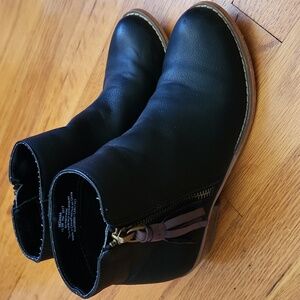 Cute black ankle boots with a brown tassels on the zippers. Add style to any outfit. Good preowned condition. One inch heel. Size 13.5