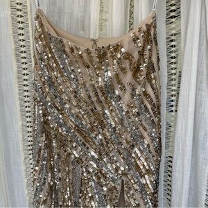 Sherri Hill Striped Sequin Beaded Formal Gold Prom Slit Maxi Skirt 51737 Size 0
