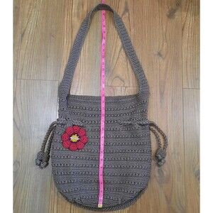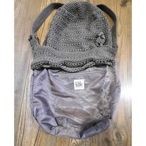 The Sak Originals Khaki Tan Taupe Crochet Drawstring Boho Hobo Shoulder Crossbody Bag