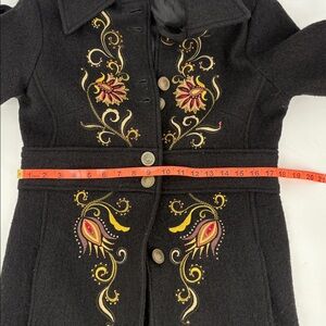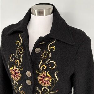 Vintage Y2K Carson Womens Black Boiled Wool Embroidered Dresscoat Size M