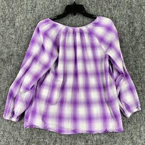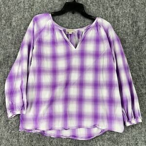 Loft Shirt Womens S Purple Plaid V-Neck Puff Sleeve Peasant Cottagecore Flowy
