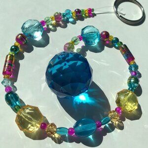 Beaded Suncatcher Yellow Pink Blue Crystal Prism Hanging Patio Decor Yard Art