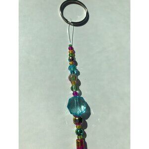 This one of a kind, handmade suncatcher is full of joy & whimsy! At 16 inches long this suncatcher has a variety of yellow, pink & turquoise blue glass & acrylic beads in a variety of shapes ending with a turquoise glass prism that will shower your space with light when the sun hits it! The beautiful design will bring that pop of color to just about anywhere from the patio to the bedroom! A small metal ring is attached to the top for easy mounting on a hook, nail or in a tree.