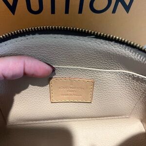 Chic Louis Vuitton cosmetic pouch with signature monogram. Rich brown with gold accents. LV box and dust bag are included.