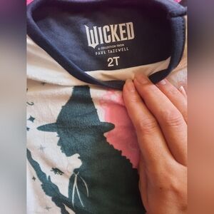 Charming pajama set featuring a pink and green wicked design, Includes matching socks. NWT 💚🩷 very soft, 100% polyester, socks 99% polyester 1% spandex