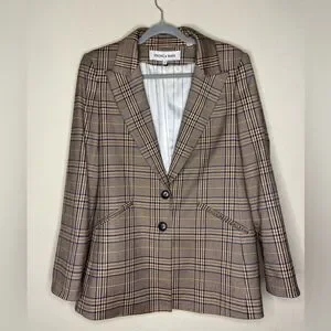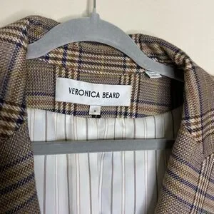 Veronica Beard Maci Plaid Dickey Blazer Tan Jacket Size 8