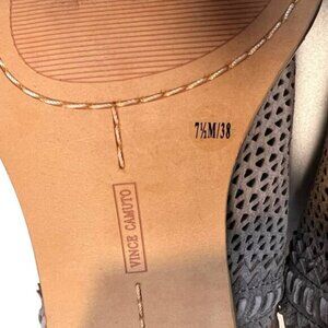Geometric perforations and jagged trim merge with whipstitch details adding texture and a hint of western inspiration to the Tricinda dress sandals from Vince Camuto.