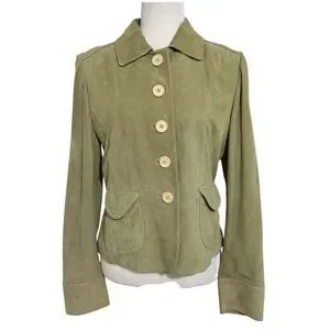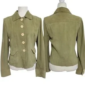 Ann Taylor Women's Sage Green Suede Office Work Casual Jacket 5 Button Sz Medium