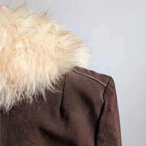 Vintage Brown Suede Penny Lane Jacket Groovy Furry Genuine Leather Western Coat