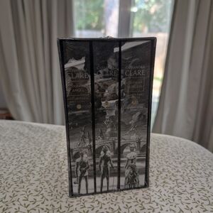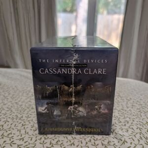 The Infernal Devices trilogy by Cassandra Clare. Includes three books in a sleek black and gray box set.