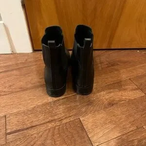 Elegant black leather ankle boots. Sleek design with a comfortable fit. Ideal for versatile styling.