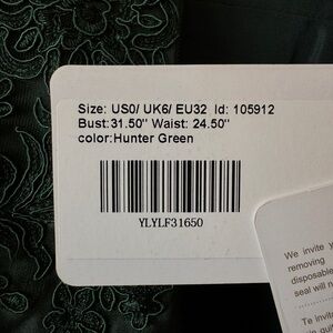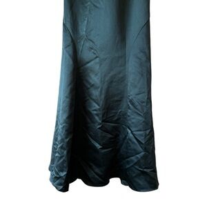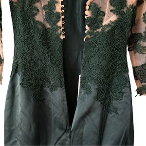 JJ’s House Emerald Green Beige Embroidered Satin Button Evening Gown Dress US 0
