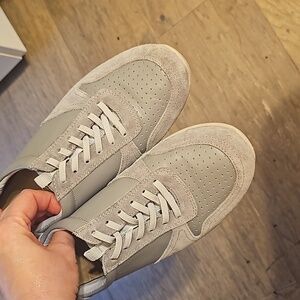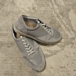 Stylish gray sneakers. Perfect for casual wear. Comfortable and trendy.