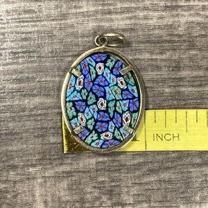 Vintage Murano Millefiori Floral Glass Oval 800 Silver Pendant. The is a scratch on one side of the glass that is difficult to capture in a picture but can be felt if touched but this is otherwise in excellent condition. It has the Italian silver designers maker stamp next to 800. Please message me prior to purchase with any questions. Thank you!