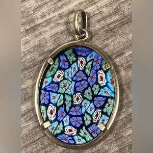 Vintage Murano Millefiori Floral Glass Oval 800 Silver Pendant