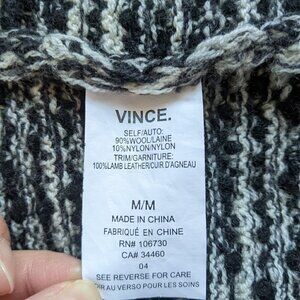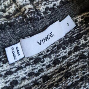 Vince Frayed Edge Drape Front Cardigan M Black Knit Mid Length Chunky Sweater