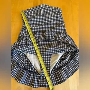 J. Crew ๐๏ธ Blue & White Gingham Retro Style beach swimsuit bathing suit skirt 6
