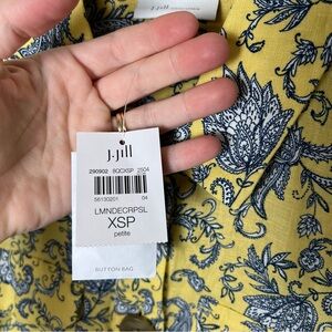J.Jill Love Linen Lemon Paisley Popover Shirt Dress Petite XS Yellow NWT Preppy