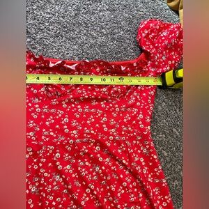 LAIT Collection NWT Red Floral Sweetheart Babydoll Puff Sleeve Midi Dress M