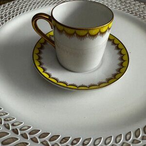 Fitz and Floyd Vintage Antique China Yellow Espresso Size Teacup and Saucer Set
