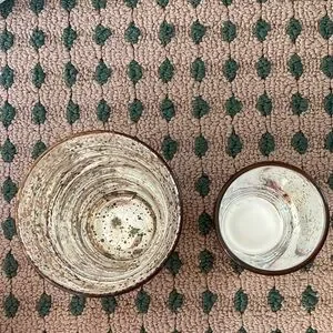 In good condition! Only used for my wedding reception. Assorted from 8 curved tea candle holders and 9 mini holders. Let me know your preference. Offers welcome!