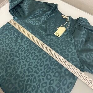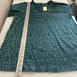 JODIFL Women's Large Leopard Print Blouse Top Long Sleeve V Neck Emerald NEW