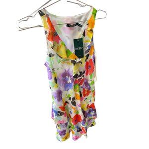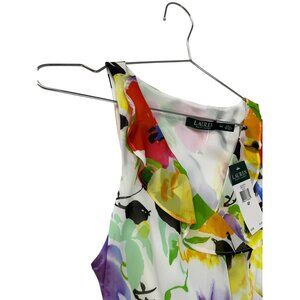 This Lauren Ralph Lauren dress features a vibrant multicolor floral print, providing a cheerful and stylish option for various occasions. It is crafted with care for a flattering fit and a comfortable feel, suitable for a variety of settings. Unused still with tags with no defects. Total length is 33.5", shoulder to shoulder 11", pit to pit 18.5", waist 18", hip 19", hem 28.5". SKU 9079