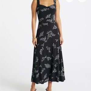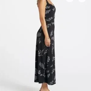 41 Hawthorn Black and Gray Leaf Print Maxi Dress