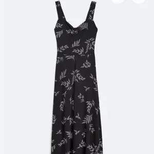Chic maxi dress with a leaf pattern. Features a flattering fit. Ideal for versatile styling.