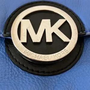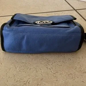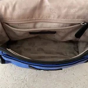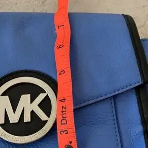 Chic Michael Kors crossbody in vibrant blue with black accents. Features signature MK logo. Ideal for everyday use.