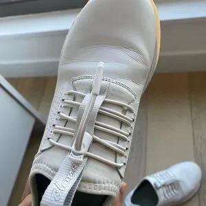 Classic Clove shoes in Brilliant White. Fluid resistant. Some creasing at the toes. Easy slip on and off. Easy to clean. Worn for two years during nursing school. Size 6.