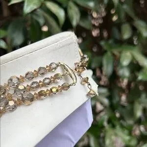 This stunning mid-20th century necklace features a blend of gold and smokey clear faceted quality beads, perfect for adding a touch of elegance to any outfit. Length is 14.5”-16” Ideal for both casual and formal occasions.