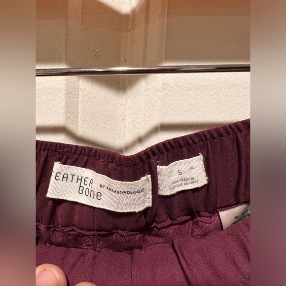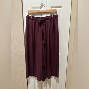 Anthropologie Feather Bone Pleated Wide Leg Cropped Pants Culotte Burgundy,Small