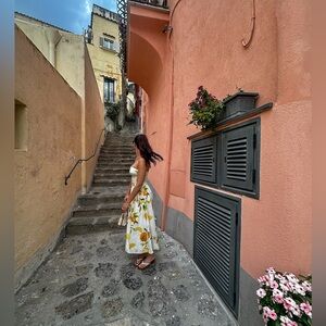 The Golden Glow Maxi Dress in Yellow is a stunning strapless maxi with a fresh, vibrant print of lemons and oranges, capturing the essence of summer. Perfect for outdoor events, this dress radiates effortless elegance and brings a touch of citrus-inspired charm to any warm-weather gathering.
