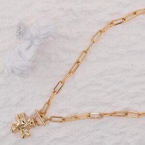 Gold Chunky Cross Necklace for Women - Bold Hammered Pendant with Toggle Clasp