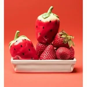 Add a playful touch to your dining table with these charming strawberry ceramic salt and pepper shakers. Featuring vibrant red and green colors, they are perfect for any kitchen decor. Would be such a great gift!