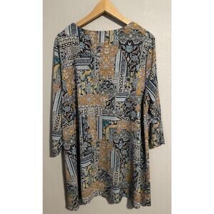 Chicos Womens Tunic Size 3 US XL Mixed Media Print Stretch Oversized Artsy Boho