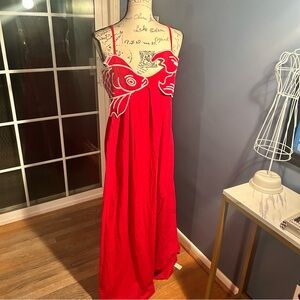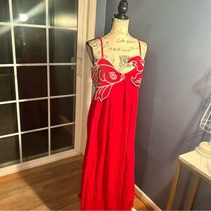 NWT maxi beach or pool dress embroidered fish. Adjustable straps. Great condition. Side zipper pisces horoscope fun animal print.