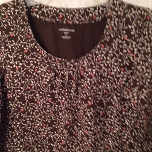 Both tunics have been gently used, in like new condition. Perfect for fall. Brown one is Croft & Barrow and is 96% cotton 4% spandex. Teal & Aqua one is St. John's Bay and is 100% cotton. 23" shoulder to hem. 18.5" across bust. 3/4 sleeves.