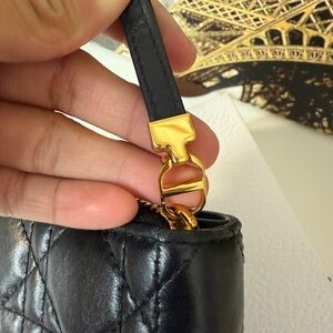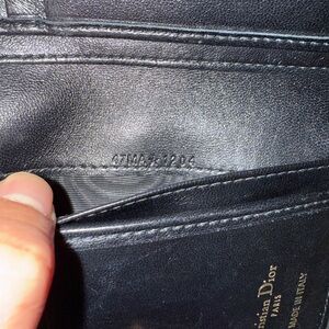 Sleek black leather card holder by Dior. Features a stylish gold detail. Ideal for chic card organization.