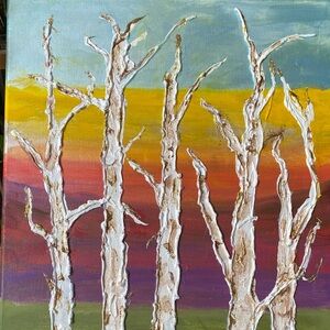 Birch trees on canvas. 16x20 inches. Ready to hang. Featuring a stunning vibrant blend of colors, this piece will bring nature's beauty indoors. Perfect for adding a splash of color to any room.