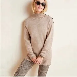 Stay cozy and stylish with this tan tunic sweater from Anthropologie. Perfect for any occasion.