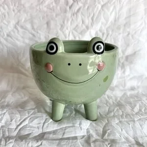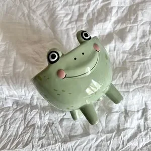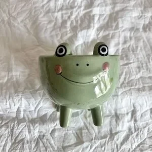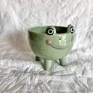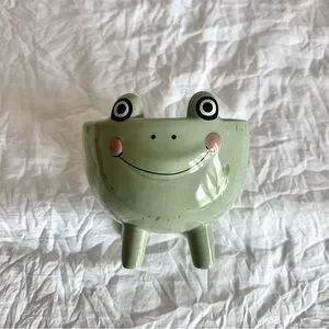 Add a touch of whimsy to your home with this charming green frog ceramic dish. Perfect for small plants or succulents if you want to use as a planter as well. In excellent condition.