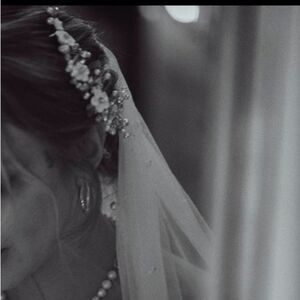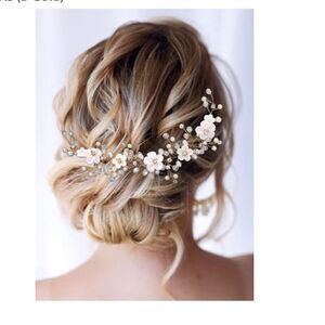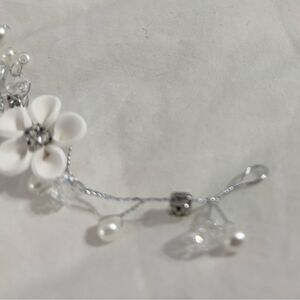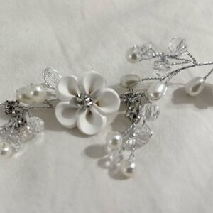 Hair accessory featuring silver vine with white flowers, peals and crystals