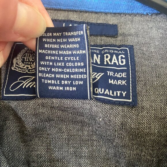 Men's American Rag gray button down shirt, size large. This is a long sleeve collared shirt with two front pockets, and button sleeves. Excellent condition! Smoke free pet free home! Quick shipper!