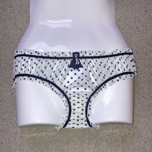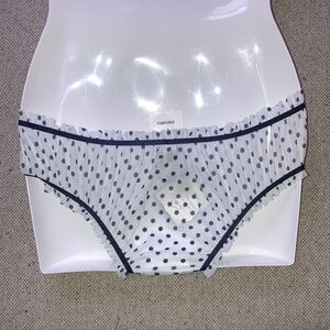 Chantal Thomass Thomas for Victoria's Secret Frilly White Sheer Mesh with Blue Polka Dots Bikini Panties