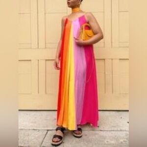 Flying Tomato color maxi dress, red pink orange yellow multi, size L