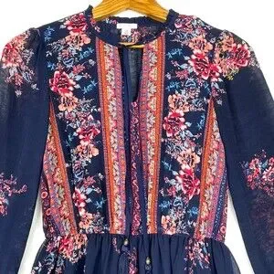 Xhilaration Floral Maxi Dress Womens XS Blue Boho CottageCore Long Sleeves.Partially lined, Semi Sheer Sleeves.